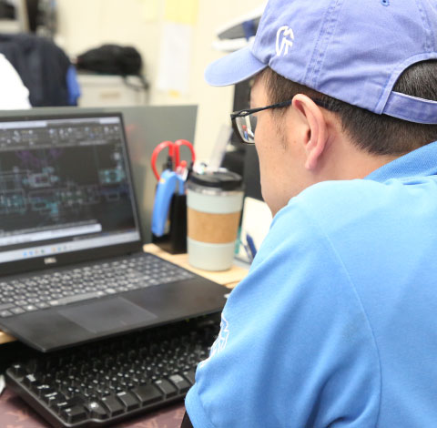製造技術は約3~5年ほどかけて丁寧に指導しますので、未経験でもご安心ください。現場管理を経て多くの経験を積んだのち、アメリカに活躍のフィールドを移します。渡米後は日本で取引のある商社に同行しながら設計や製造の外注先選定、設置現場で指示出しや工程管理をお願いします。